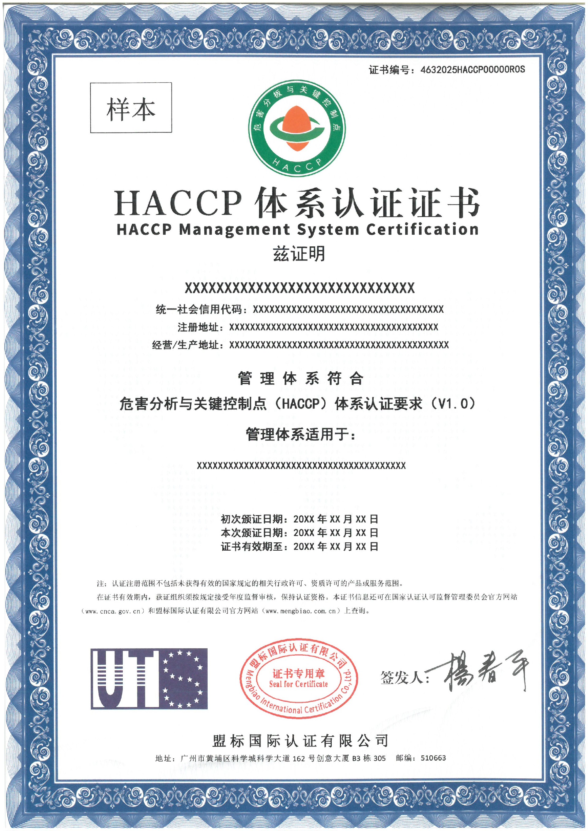 職業(yè)健康安全管理體系認(rèn)證證書-樣版